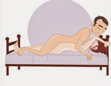 For this position lie down on your back and lift up your leg. Let your man straddle you and sit across your thighs, lifting the other leg onto his shoulder.